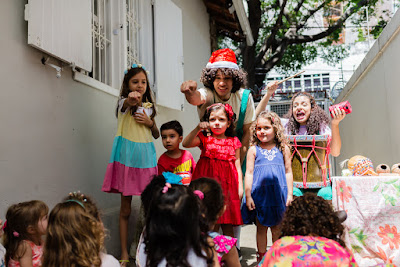 mãe e da interação e das brincadeiras entre ele e os outros bebês. O contexto é